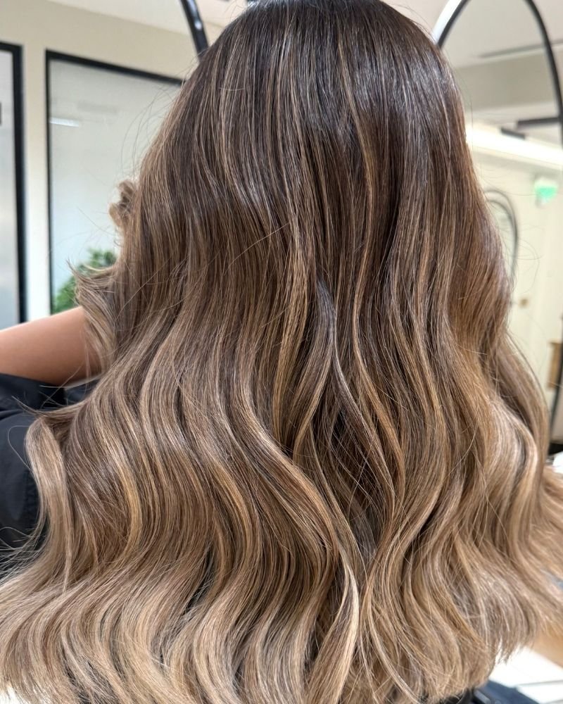 A technique with soft blond contrast on the roots & more natural depth, wile slowly graduating  blond mids & ends.